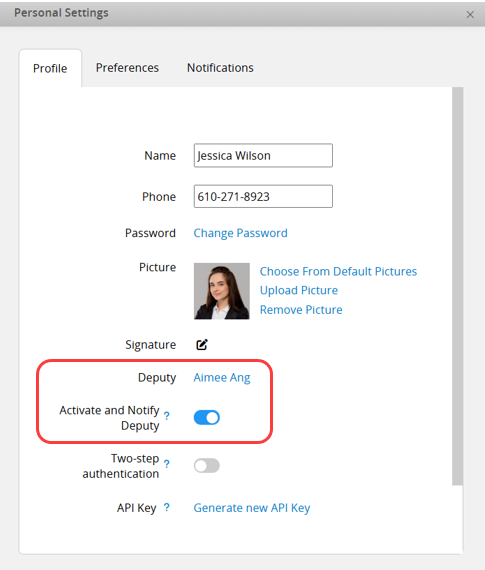You can set up a deputy and enable the Activate and Notify Deputy options. This activates the deputy approval feature, ensuring the deputy receives approval notifications and preventing delays during your absence.